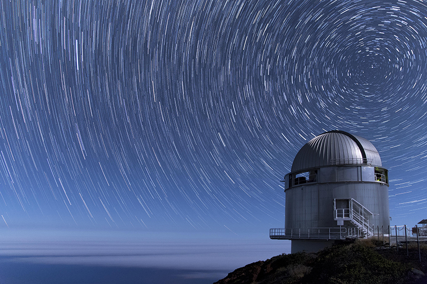 The Nordic Optical Telescope (NOT) and startrails around the North Star.